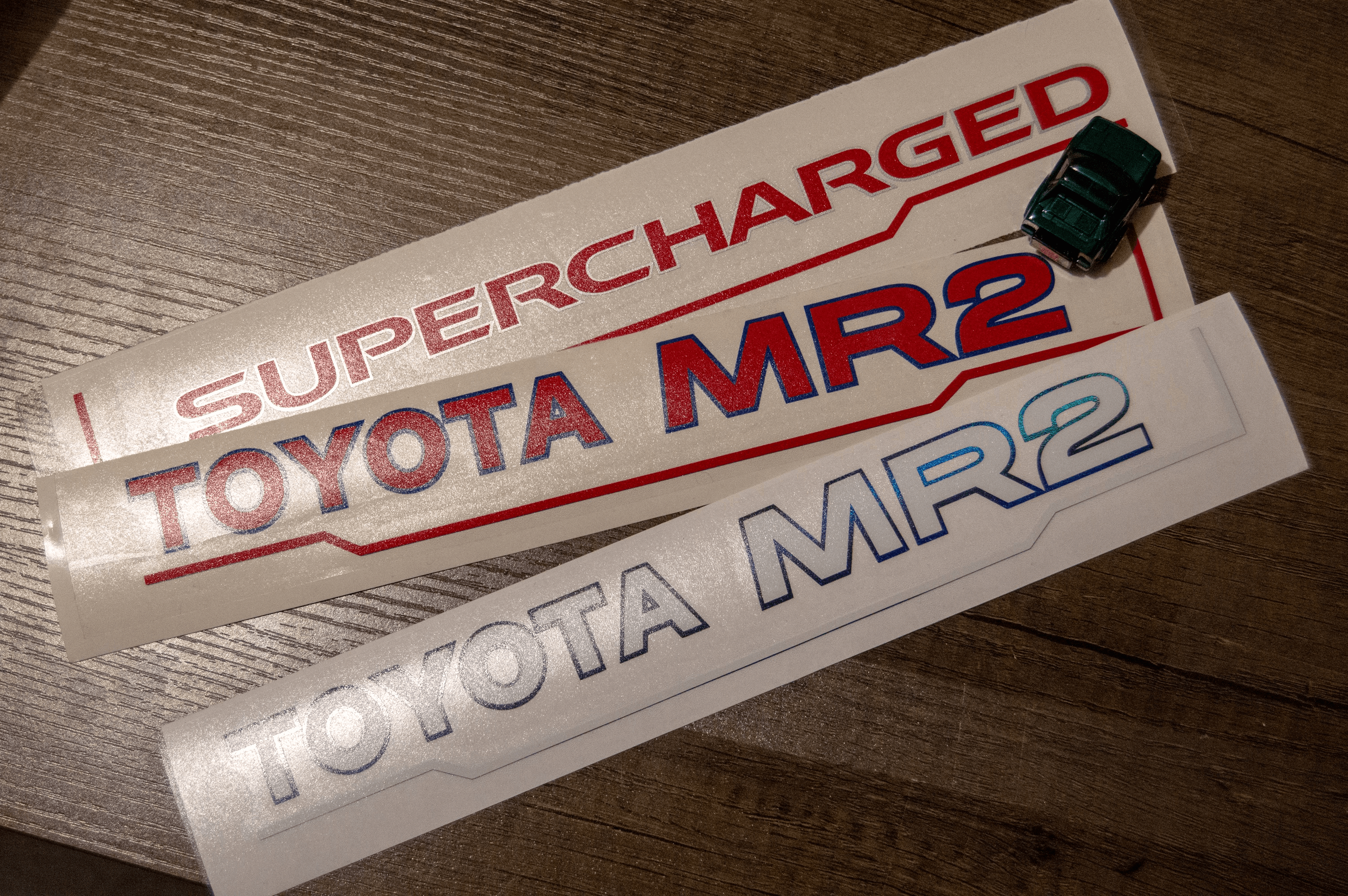 Please keep in mind the color options are 100% up to you. Should you select “None” for either option, this will make it a single-color decal. For example, if you pick “None” for Inside Color and “Silver” for Outline Color, you will receive merely the silver outline as the decal for your MR2. If you decide to select the same color for both options, yes I will make it the same color layered on top of itself.