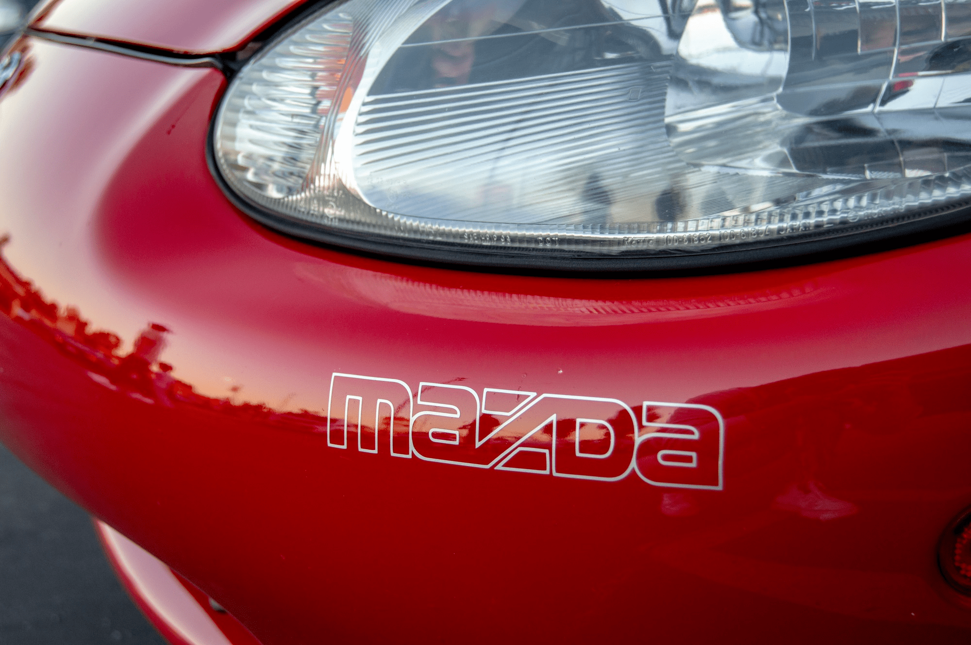 OEM part number #FB01-51-711C and #NA04-51-711C for RX7s and NA Miatas. This decal is as close to the OEM sticker as possible. This decal is meant to be on the right side of the bumper, next to the turn signal on the RX7 and under the turn signal on the Miata.
