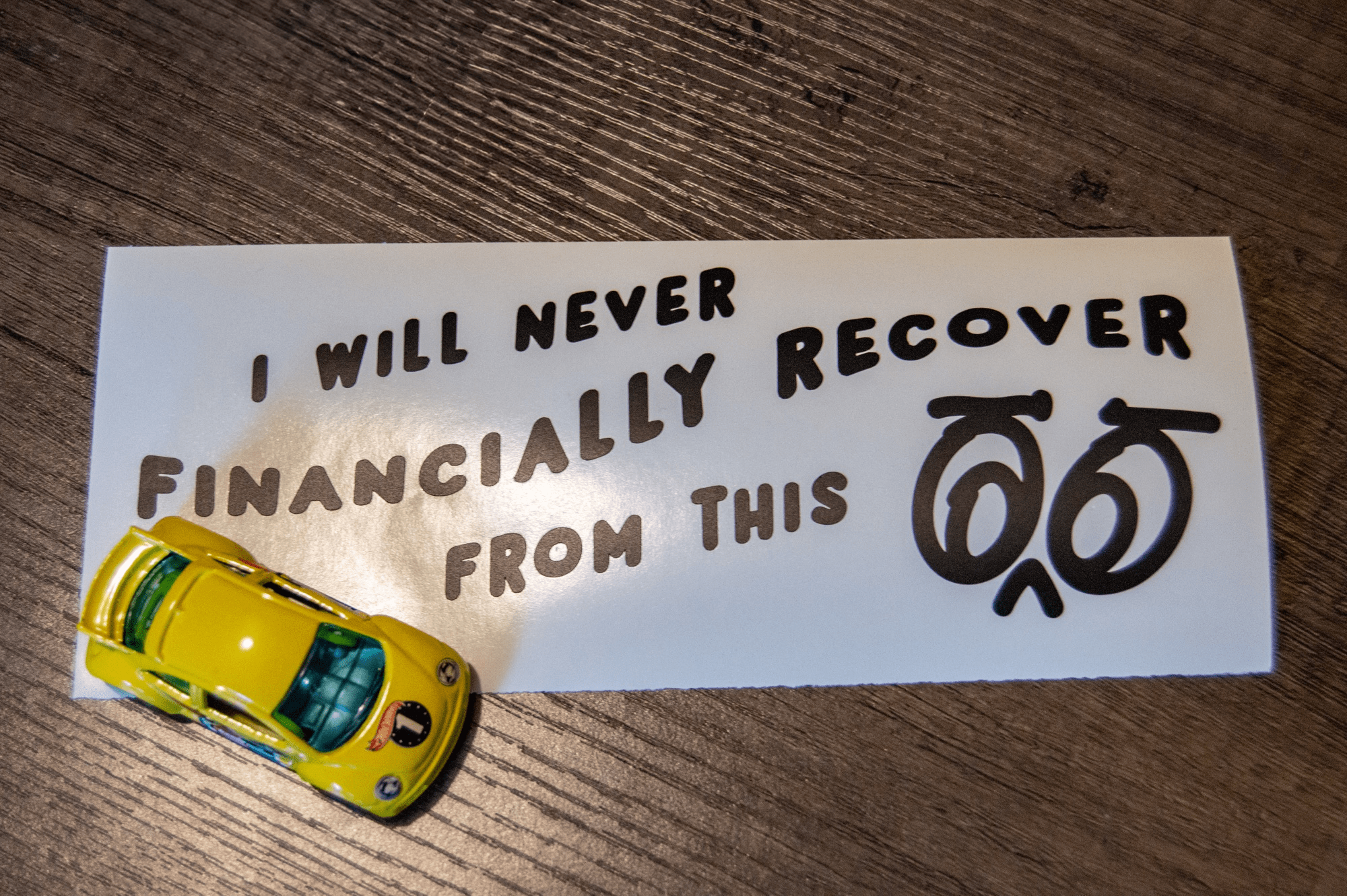 Every time I buy a new car part for my car… … or every time I buy a new car… LOL Vinyl decal. Multiple size options and colors available. Made to order.